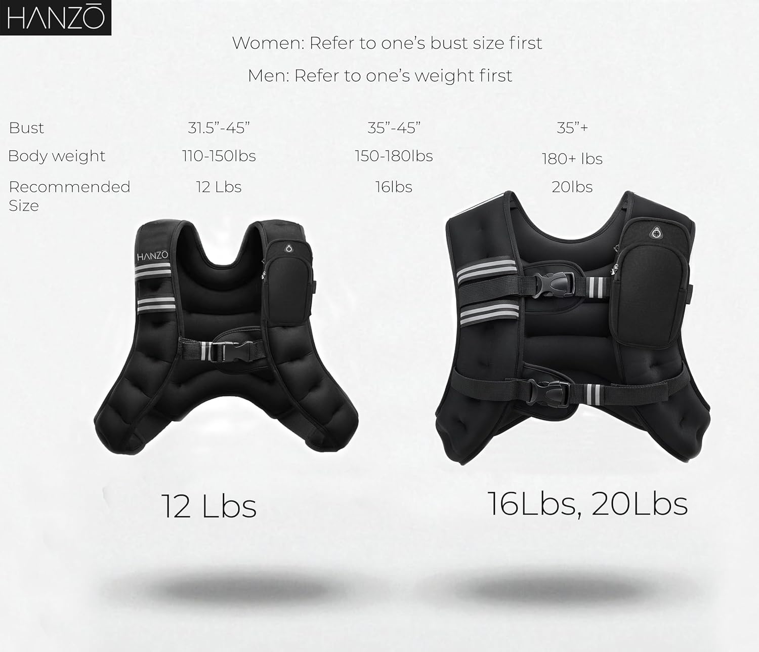 The HANZO Adjustable Weight Vest adds resistance to your runs and workouts with even weight distribution and a secure, bounce-free fit. Made from durable neoprene and polyester, it includes two ankle/wrist weights and a removable phone pouch. Adjustable straps fit most body types, while reflective details keep you visible outdoors. Ideal for building strength, endurance, and stability in any training routine.